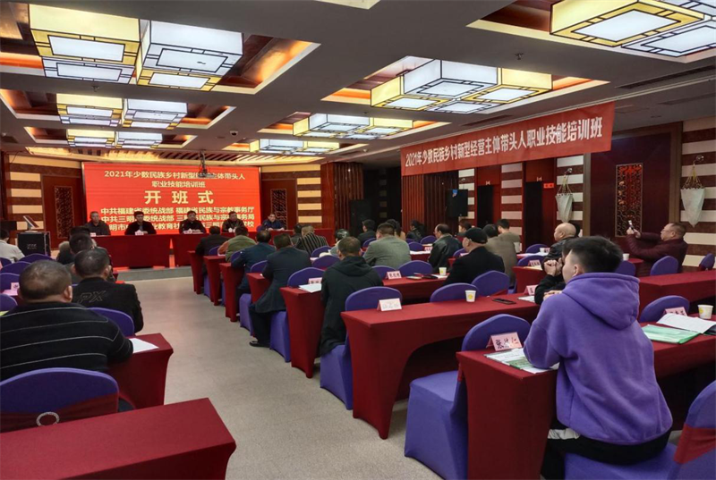 11月9日上午,2021年少数民族乡村新型经营主体带头人职业技能培训班顺利开班,来自三明市各民族乡村农民专业合作社和家庭农场经营者共38人参加培训。