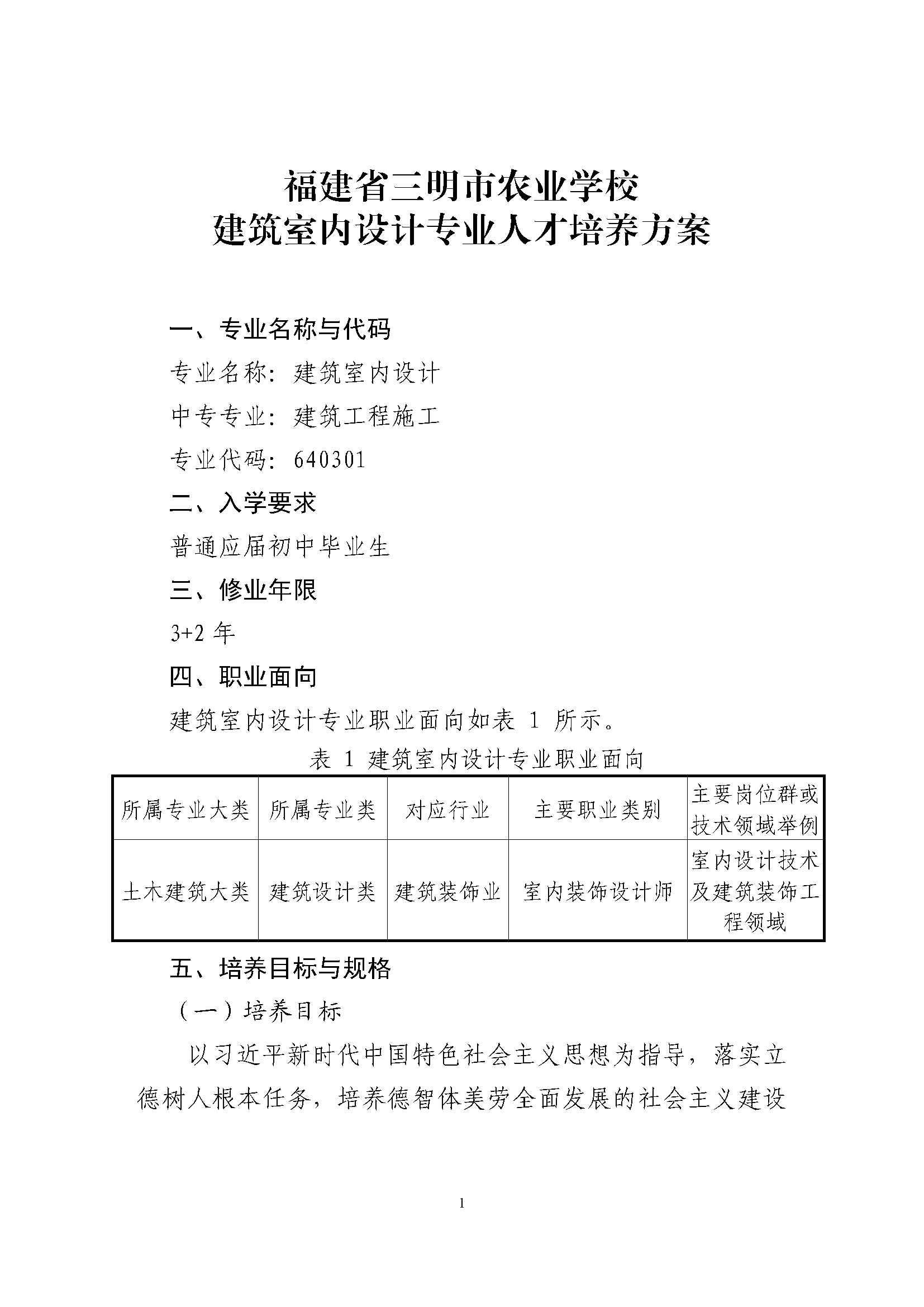 三明市农业学校建筑室内设计专业五年制人才培养方案(2023)