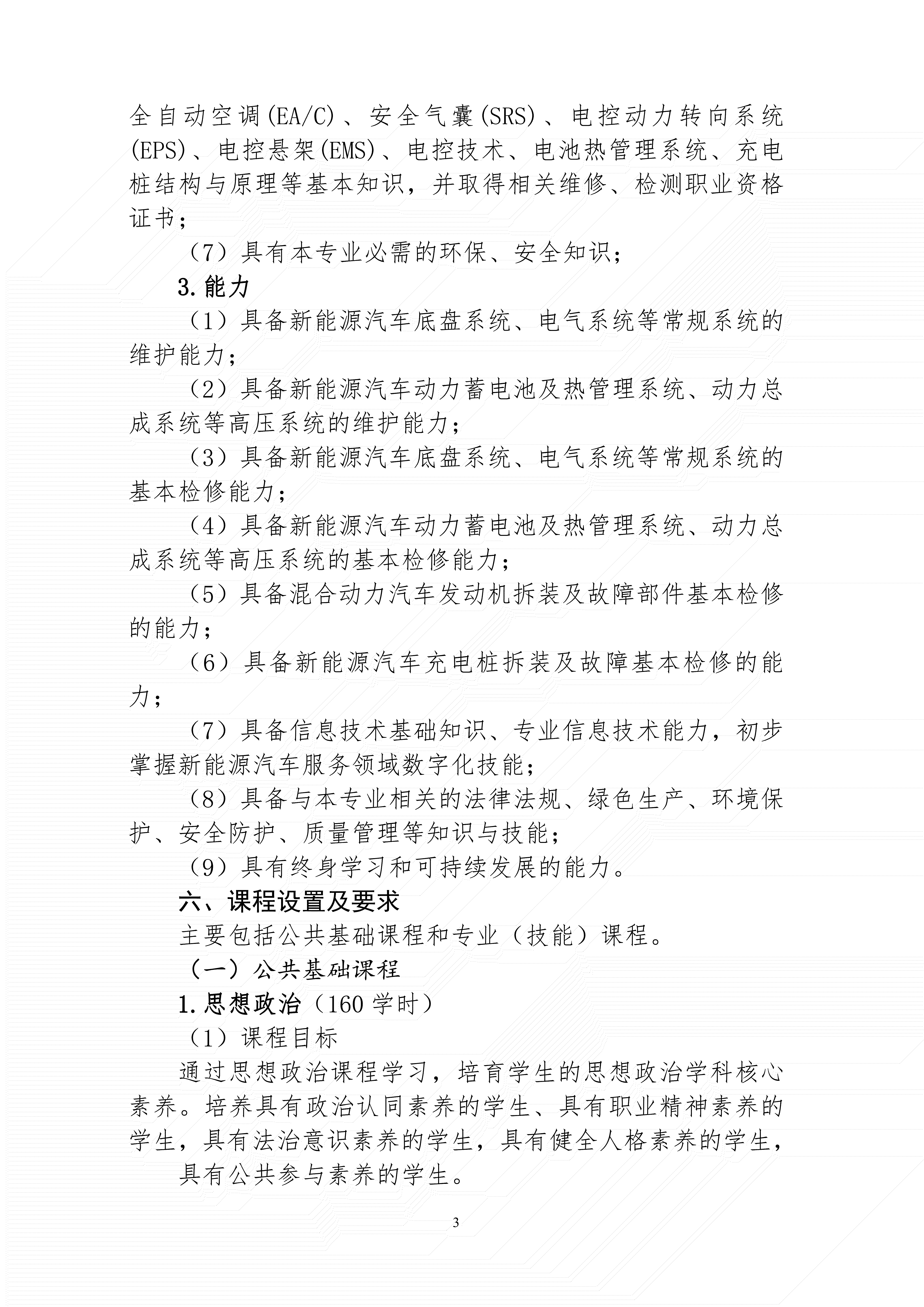 三明市农业学校新能源汽车运用与维修专业人才培养方案(2024)