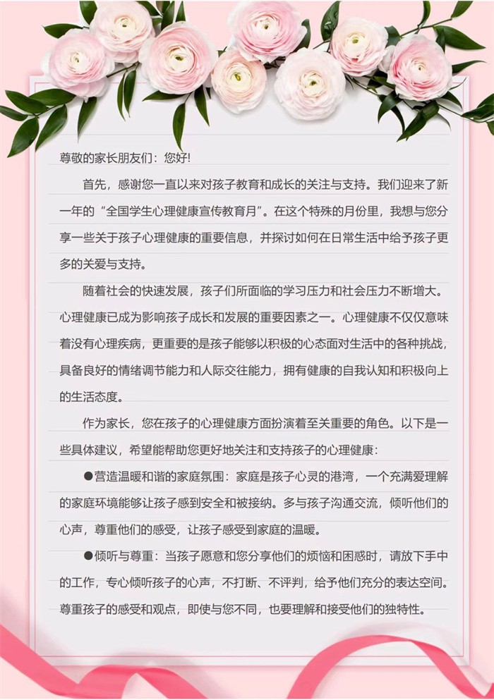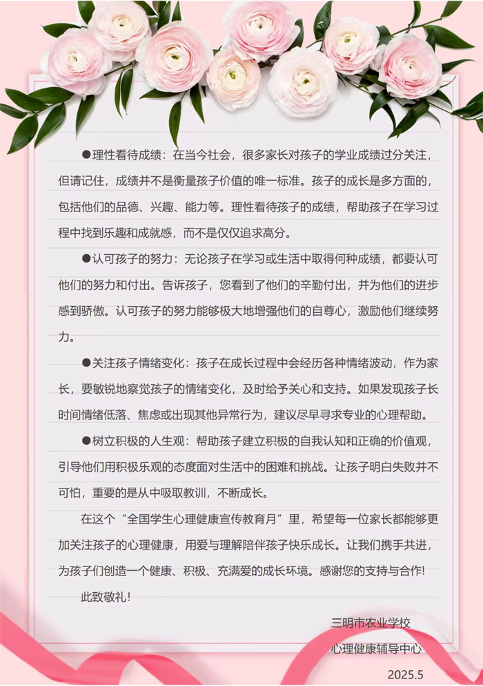 花开五月 爱满心田丨开云(中国)525心理健康周活动:以信传心——给家长的一封信