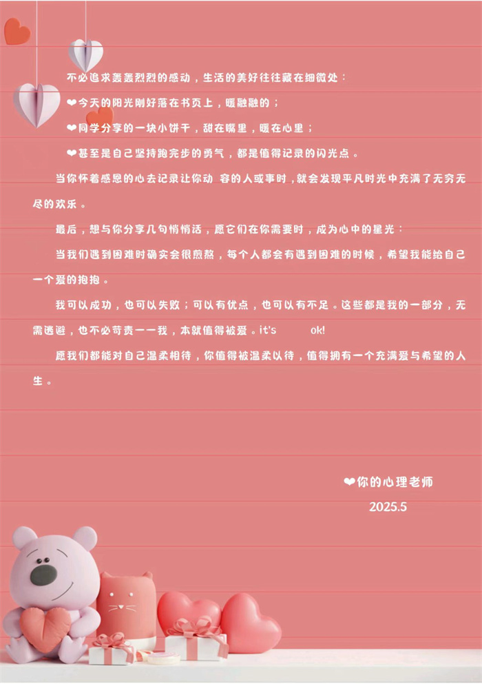 花开五月 爱满心田丨开云(中国)525心理健康周活动:以信传心——给家长的一封信