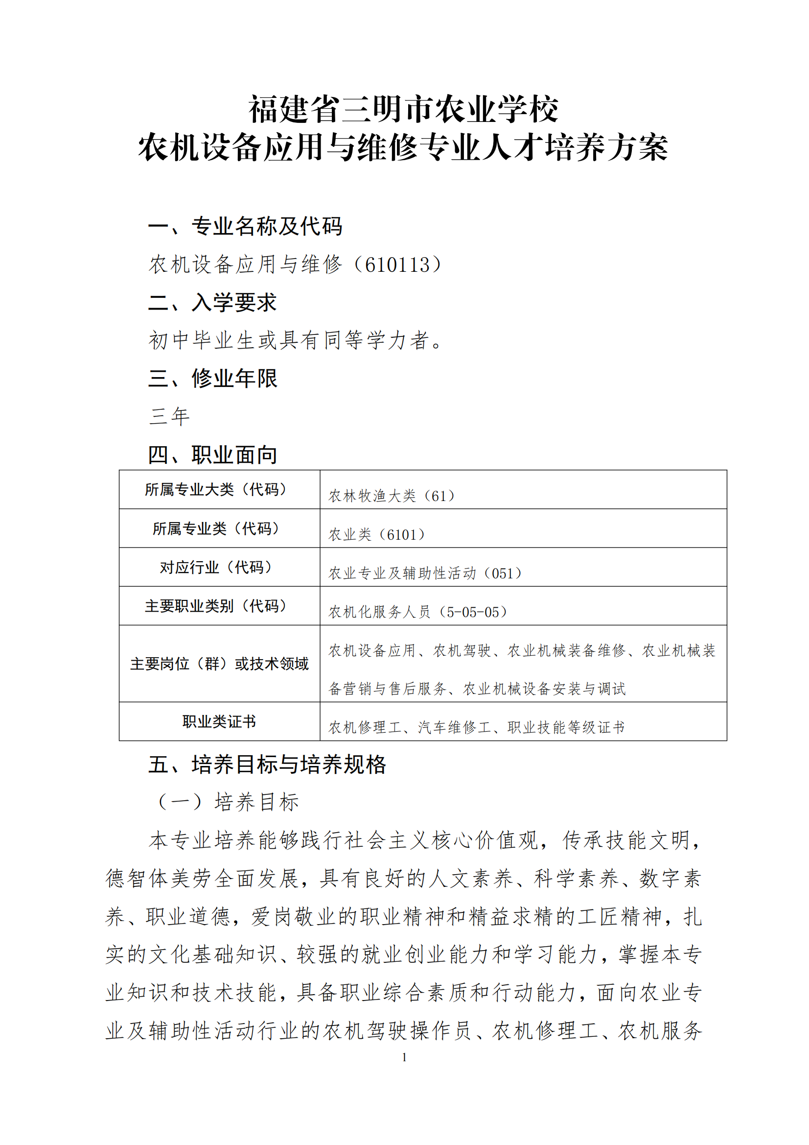 开云官方在线入口农机设备应用与维修专业人才培养方案