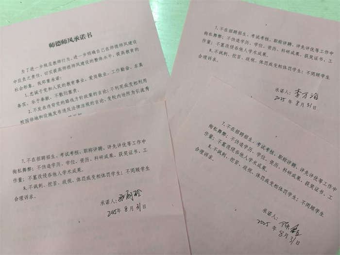 全体教职员工签订师德师风承诺书